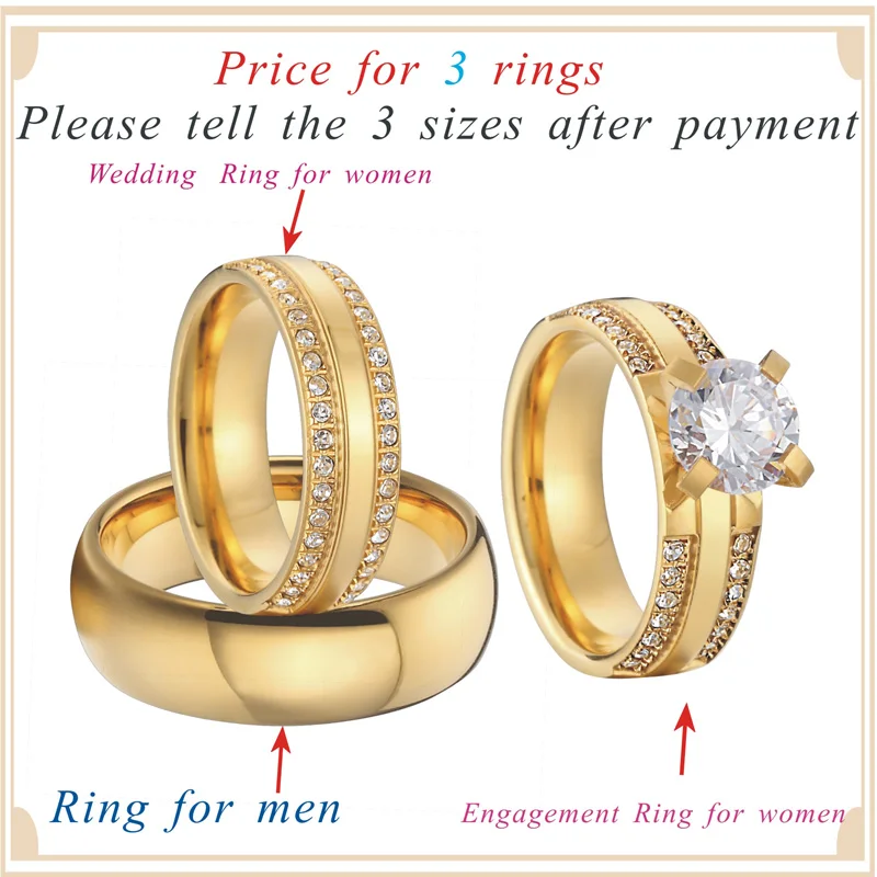 Us 127 82 30 Off Schone 3 Stucke Engagement Ringe Sets Gold Farbe Individuelle Handarbeit Zirkonia Hochzeit Band Paare Ringe Fur Frauen In Schone 3