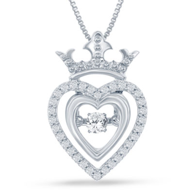Enchanted Disney Fine Jewelry 1 5 C T T W Genuine Diamond Silver Heart Disney Princess Crown Pendant Necklace