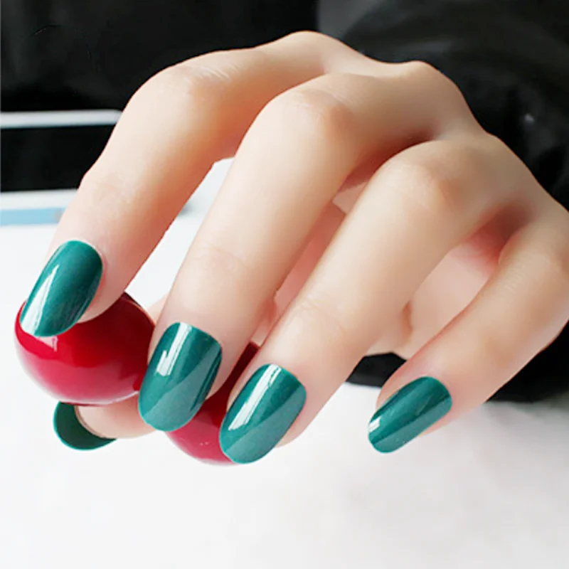 24pcs Dark Green Rounded Bling False Nails Tips Impress Short Oval Fake Nails Acrylic Nail False Artificial Faux Ongle Court