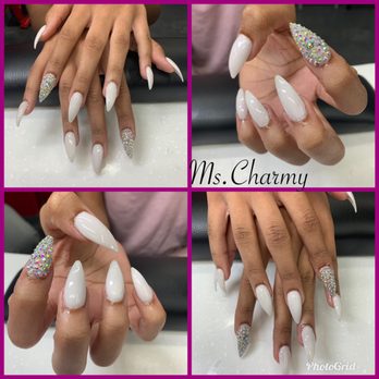 White Acrylic Full Set With Bling Nail Stiletto Shape Yelp