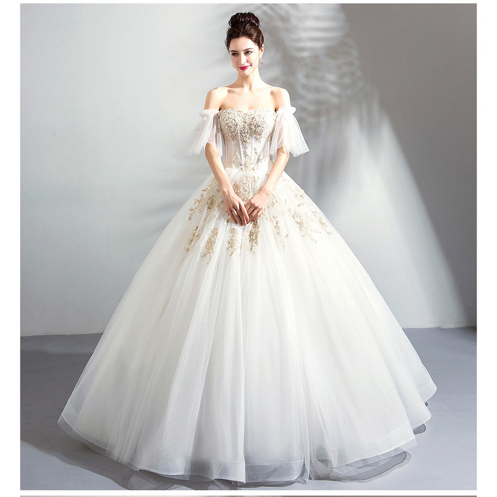 Xs 3xl Off Shoulder White A Line Puffy Princess Wedding Bridal Photoshoot Dress