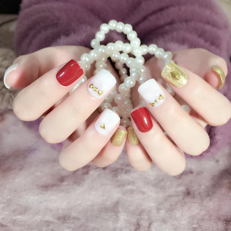 Us 0 65 41 Off Short Candy Fake Nails Princess Pink Acrylic False Nail Red Black White Full Cover Nail Tips Manicure Tools 008s In False Nails From