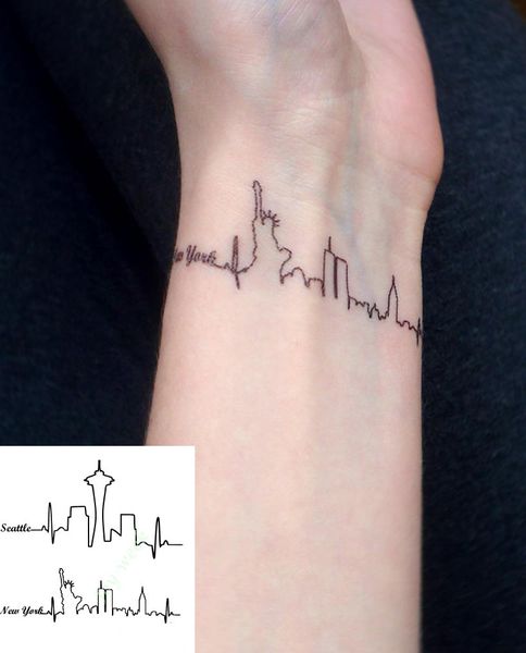 Grosshandel Wasserdichter Sticker Fur Temporare Tatowierung Seattle New York Chicago Skyline Einfache Linie Streifen Flash Tattoo Gefalschte