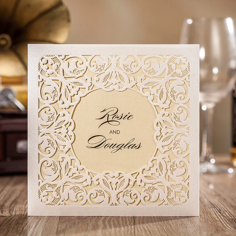 Laser Cut Wedding Invitations Cards White Flowers Invitation
