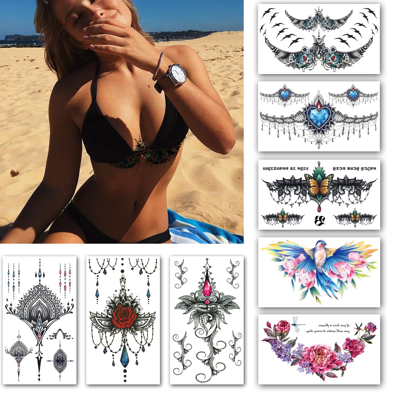 Leoars Large Chest Temporary Tattoo Sticker Mandala Back Waist Breast Underboob Fake Tattoo Sticker Sexy Body Makeup Fake Tattoos For Women Lady
