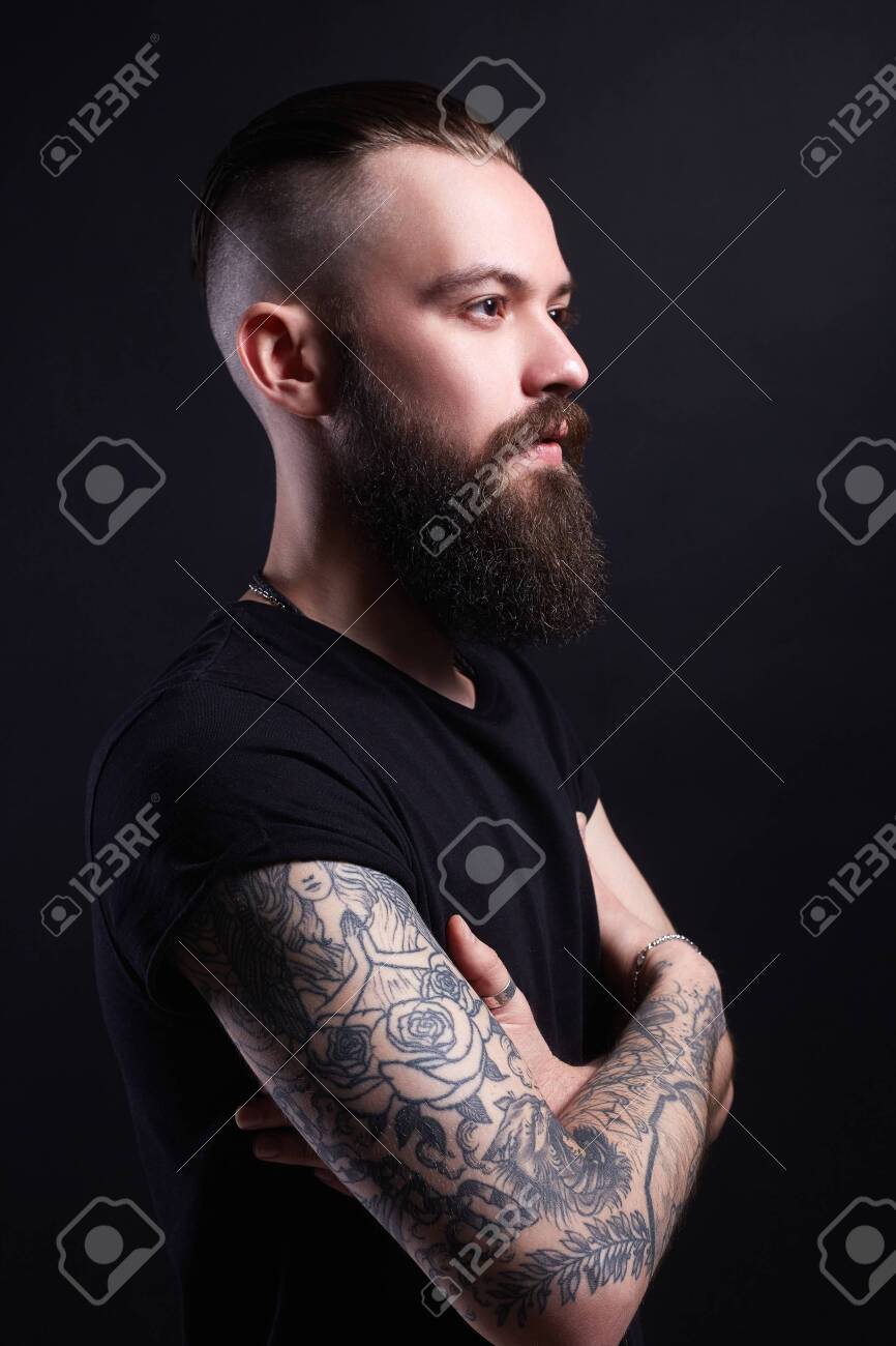 Boy With Stylish Haircut And Tattoo Handsome Man Tattoed Bearded