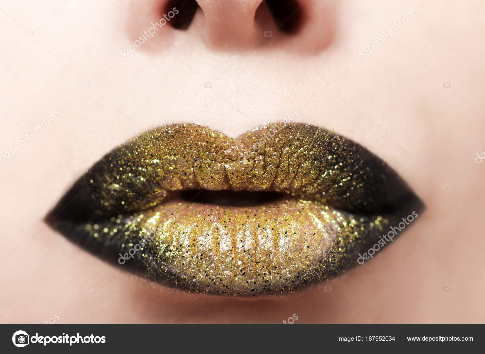 Lip Makeup Golden Black Lipstick Close Stock Photo
