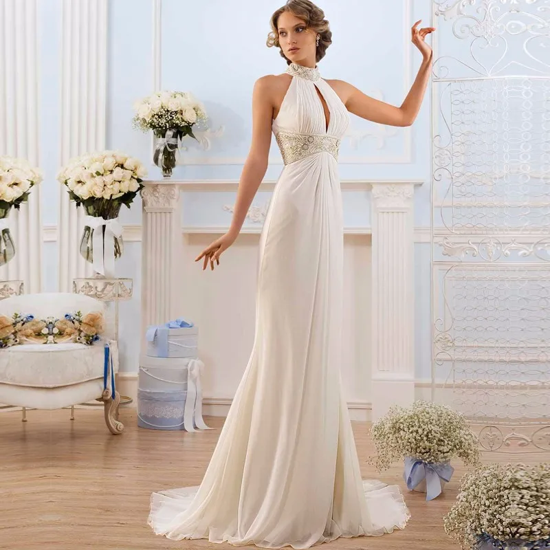 Us 131 75 15 Off 2019 Greek Style Elegant Wedding Dresses High Neck Bead Beach Bridal Wedding Gowns Vestidos De Novia Fashion Hollow Back In Wedding