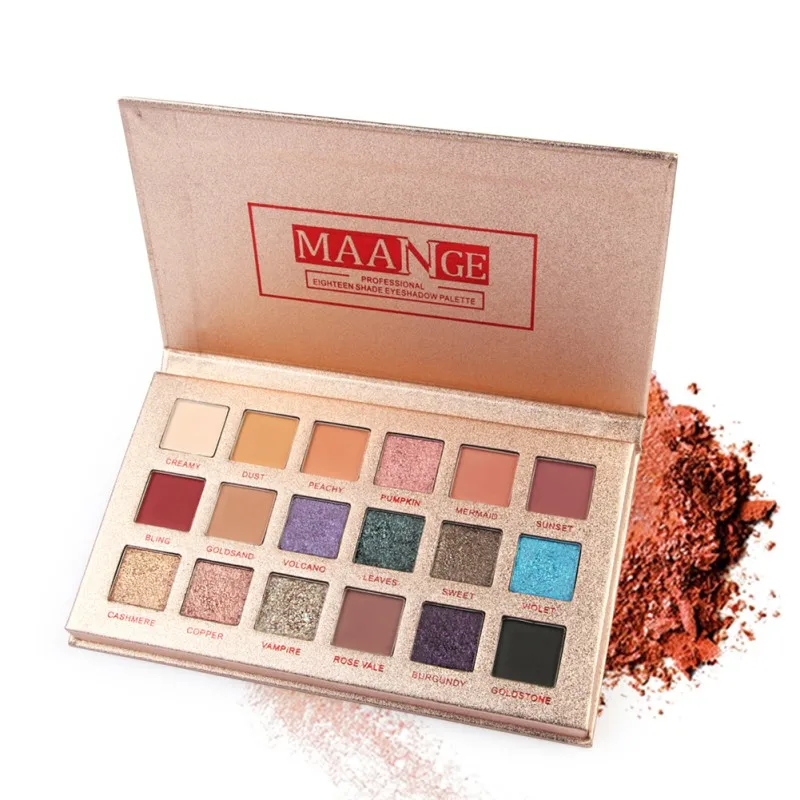 18 Color Rose Gold Eye Shadow Tray Shimmer Glitter Eyeshadow