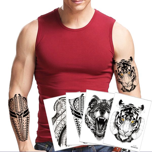 Fake Black Temporary Tattoo Sticker Body Art Owl Tiger Decal Fashion Cool Waterproof For Women Men Arm Leg Back Shoulder Design Totem Tattoo Design