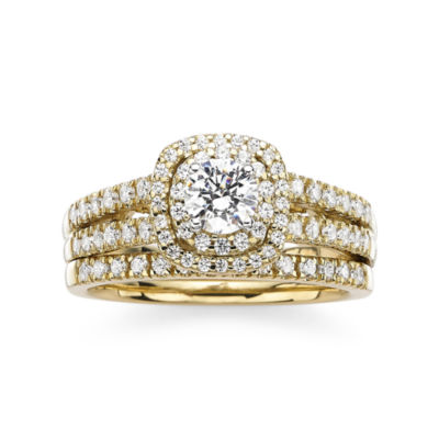 Modern Bride Signature 1 Ct T W Diamond 14k Yellow Gold Bridal Ring Set