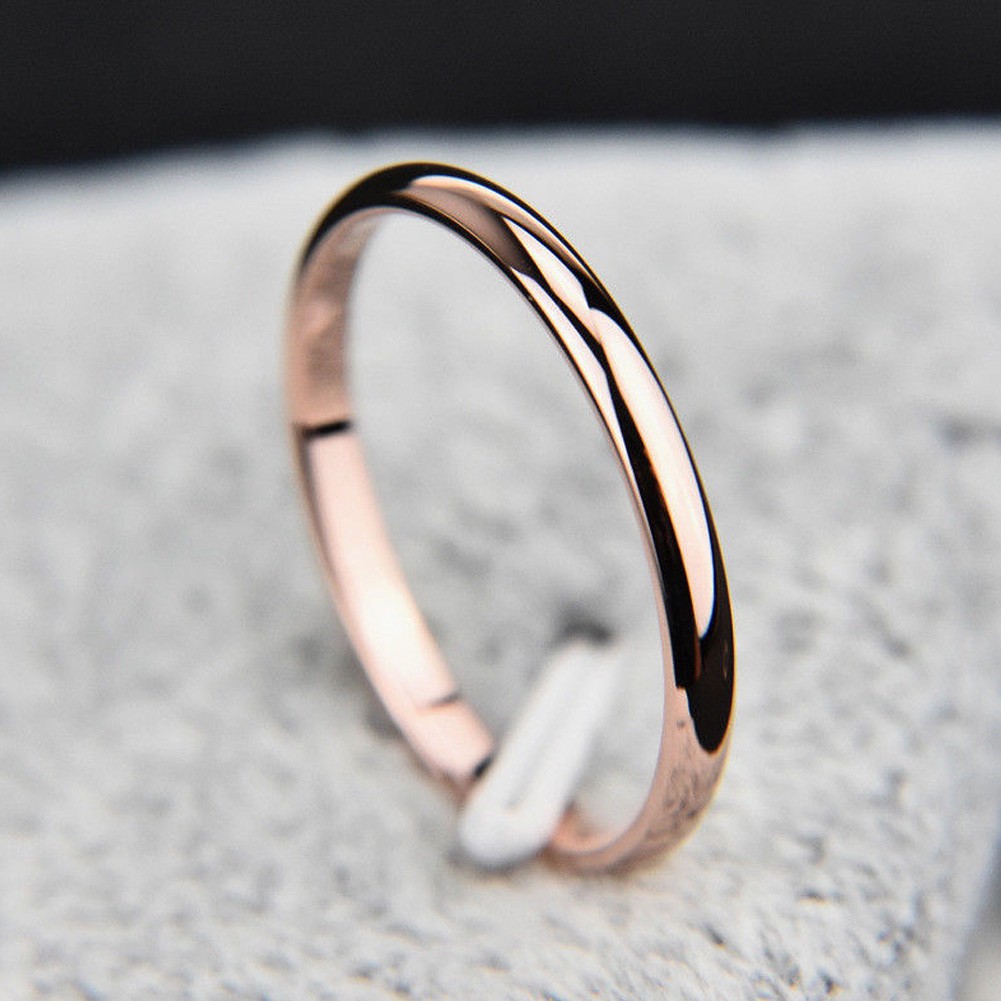 Cicitop Titanium Steel Rose Gold Wedding Rings Simple Couple Lover Gift