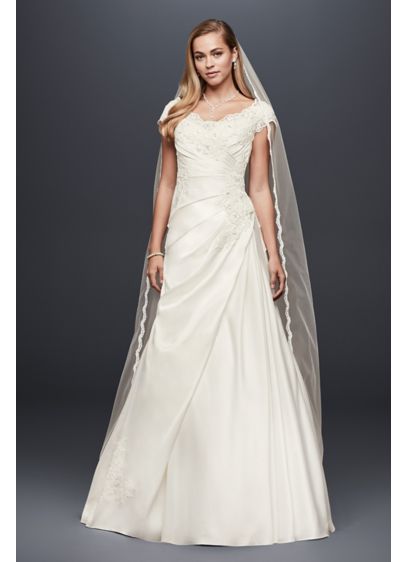 Appliqued Gathered Satin A Line Wedding Dress