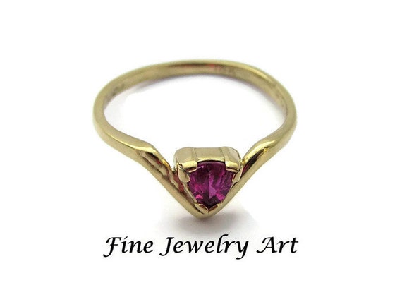 Stunning Pink Sapphire Ring Non Traditional Engagement Ring Chevron Shaped V Ring Triangle Pink Sapphire 18k Gold Simple Elegant