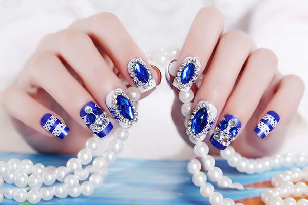 Women S French Bridal Wedding Flowers False Nails Nail Art Design Acrylic Full Fake Nail Tips For Bride With Glue Nail Pens Nails Acrylic From