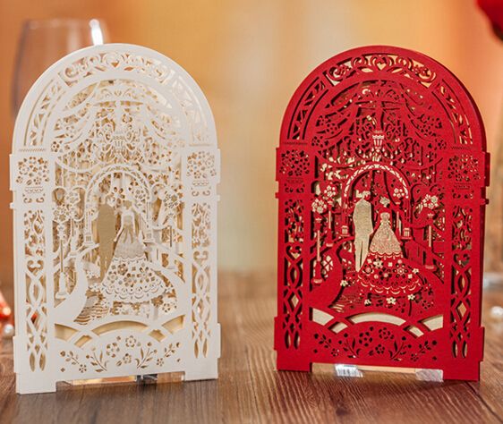 Wedding Invitations White Red Paper Blank Card Laser Cutting Church Pattern Wedding Invitation Flowers Hollow Wedding Cards Iv03 Printable Wedding
