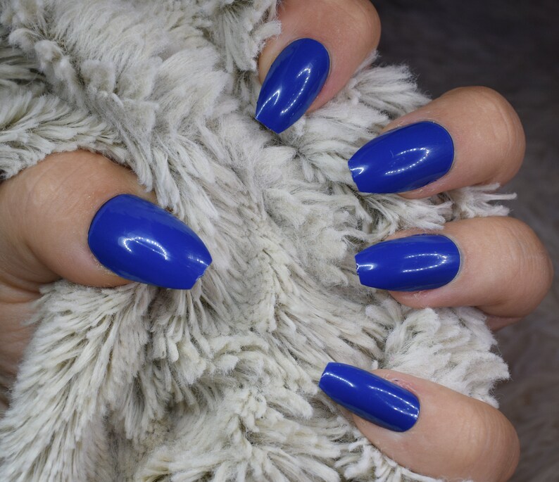 Bright Blue Fake Nails Short Coffin False Nails Hand Painted Press On Short Nails Ballerina Nail Designs Full Cover Nails 20 Glue On