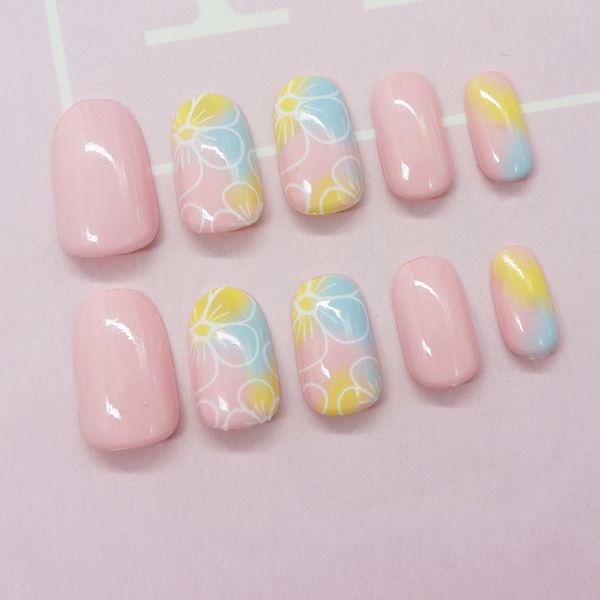 Summer Fresh Candy Flower Stiletto False Nails Tips Lemon Yellow Pink Cute Holiday Arts Stylish Simple Acrylic Nails Shop Acrylic Nail Supplies From