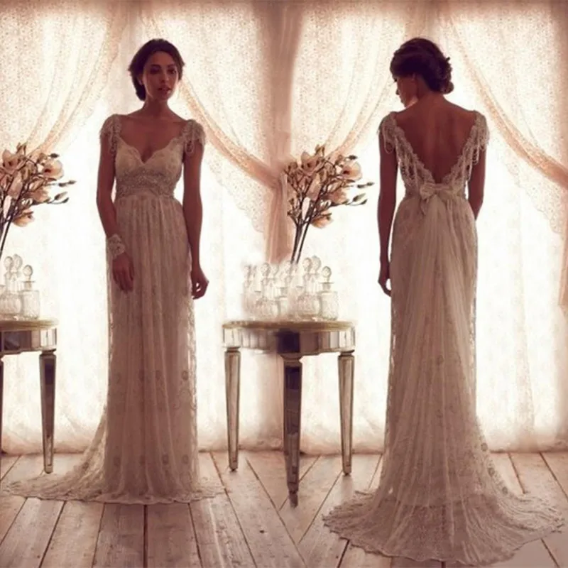Us 164 68 8 Off A Line Long Boho Beach Wedding Dresses 2019 Vintage Sexy V Neck Backless Applique Lace With Countryside Style Bridal Gown In Wedding