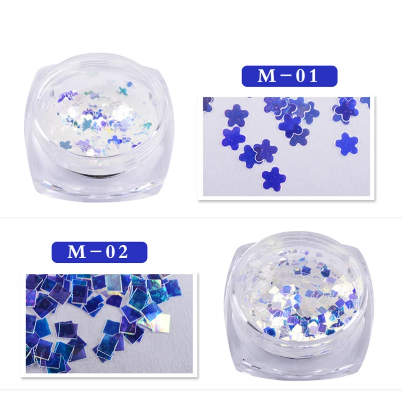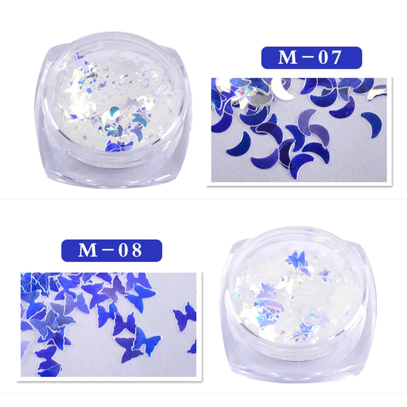 12 Styles Blu Ray Nail Art Sequins Christmas Snowflake Blue Shining Nail Sequins Moon Star Art Decoration Christmas N30cy Nail Kits Nail Pictures From