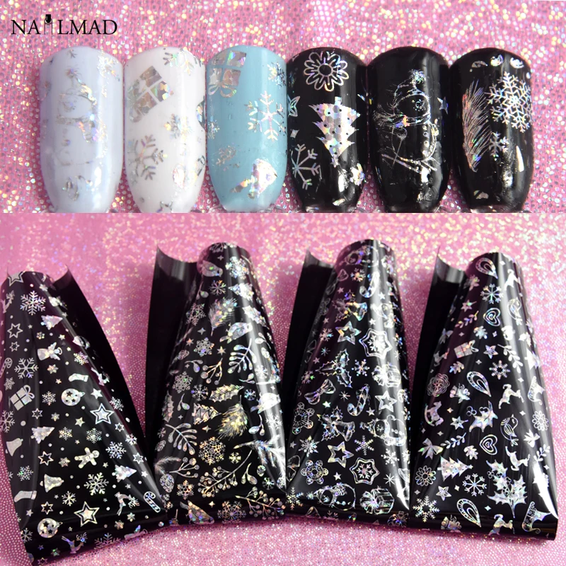 Us 1 04 30 Off 8pcs Christmas Nail Foil Laser Xmas Snowflake Nail Art Transfer Stickers Snowman Nail Foils Decals Manicure Decoration 4 20cm In