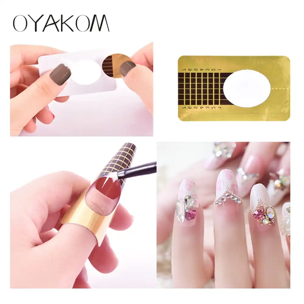 Oyakom 100pcs Nails Gel Extension Sticker Nail Art Professional Golden Acrylic Nail Forms For Nail Designs French Manicure Tools