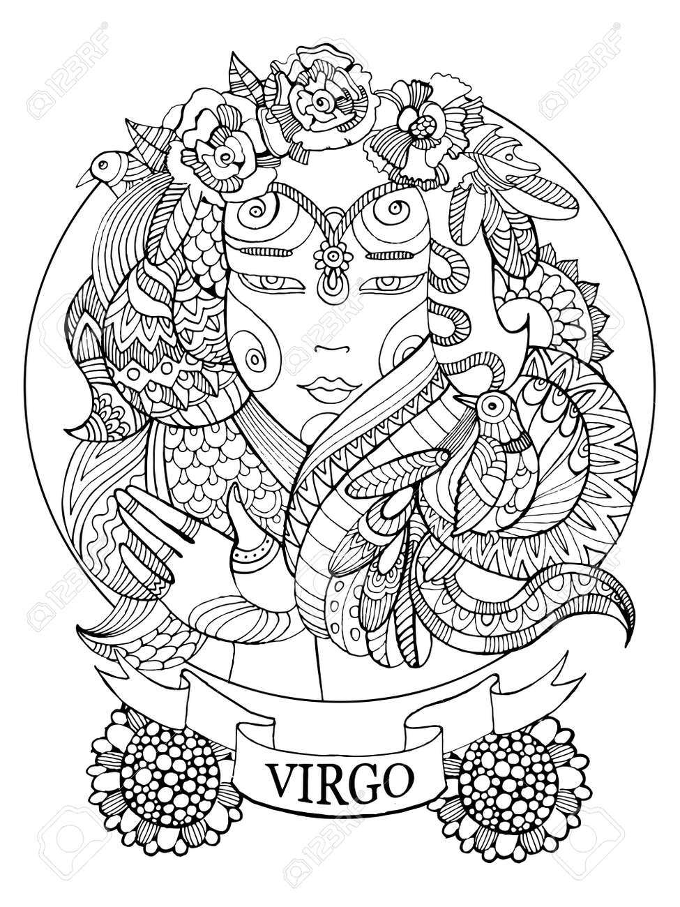 Virgo Zodiac Sign Coloring Book For Adults Vector Illustration