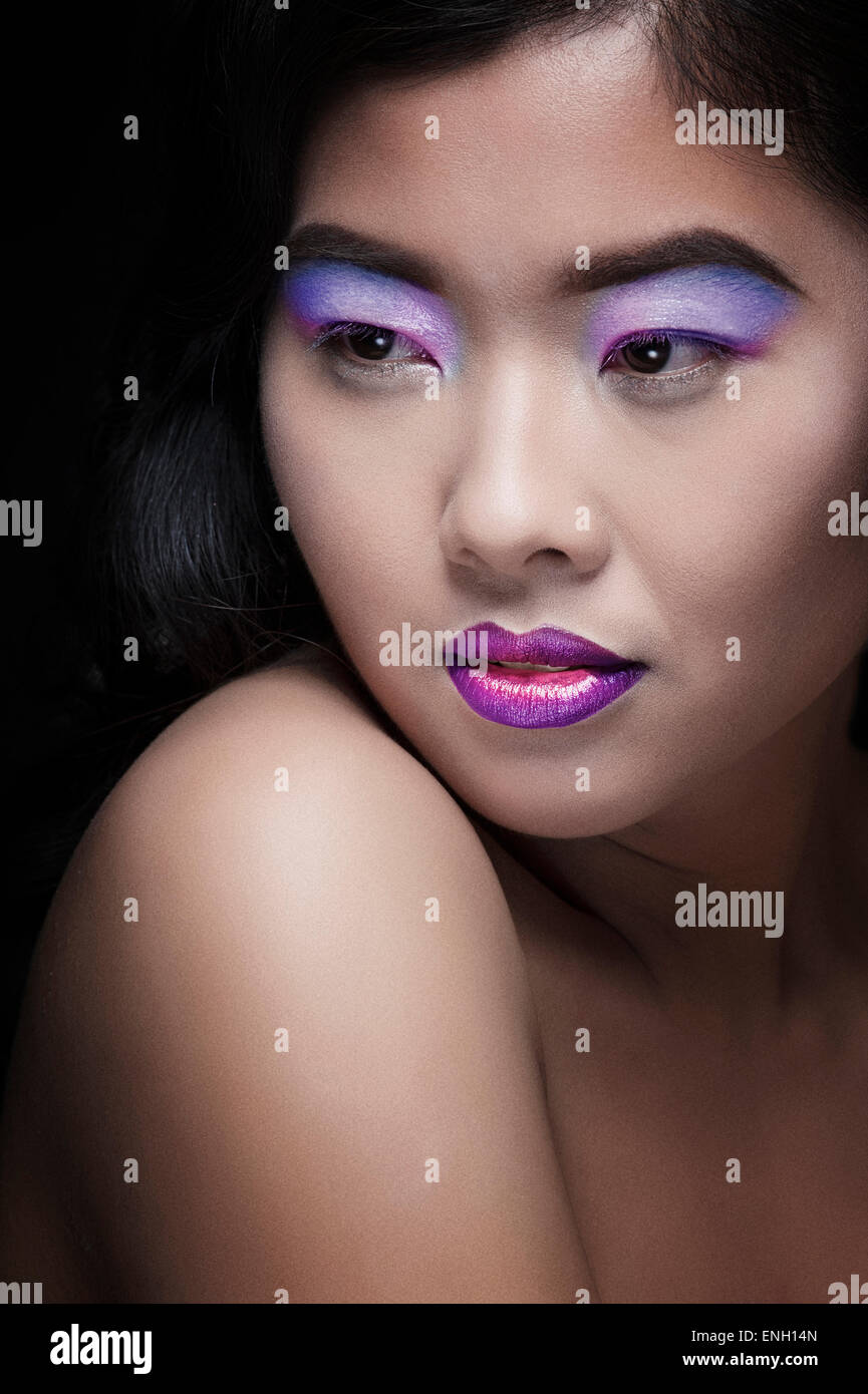 Purple Make Up Beauty Headshot Of Young East Asian Woman