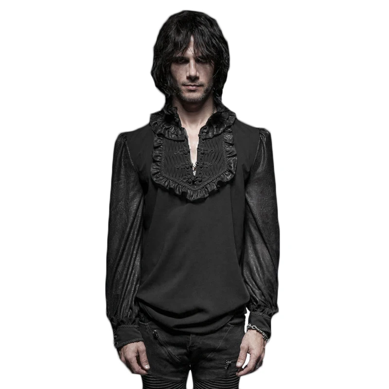 Us 70 2 10 Off Brand Punk Daily Gothic Plate Buttons Shirts For Men 2017 Casual Loose Chiffon Fabric Black Blouse Anti Pilling Men S Shirt In Casual