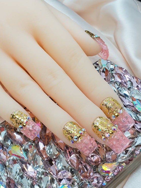 Press On Nails Kawaii Hime Gyaru Japanese Pink Ice Tip Nail