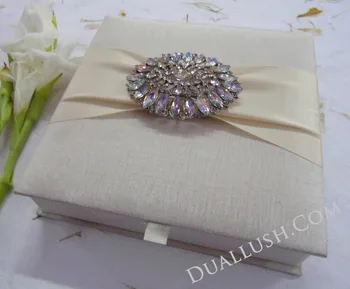 Elegant Silk Wedding Invitation Box Ivory Satin Ribbon Rhinestone Brooch Buy Handmade Invitation Box Luxury Invitation Box Silk Wedding Invitation