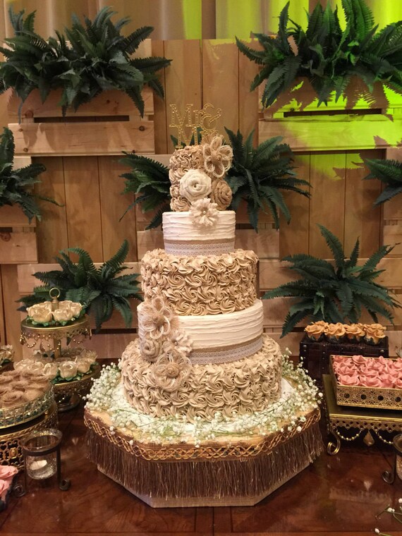 Rustic Wedding Cake Burlap Flower Assortment Set Of 10 Choose Accent Color Cake Topper Shabby Chic Rustic Wedding Cake