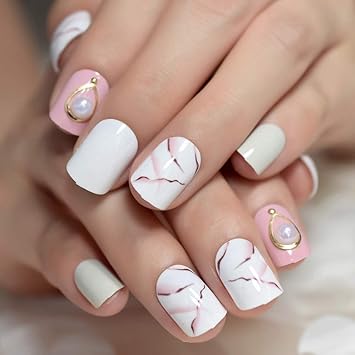Press On Nails Light Pink Marble Chrome Nails False Nails Fake Nails Coffin Nails Stiletto Nails Acrylic Nails Gel Nails