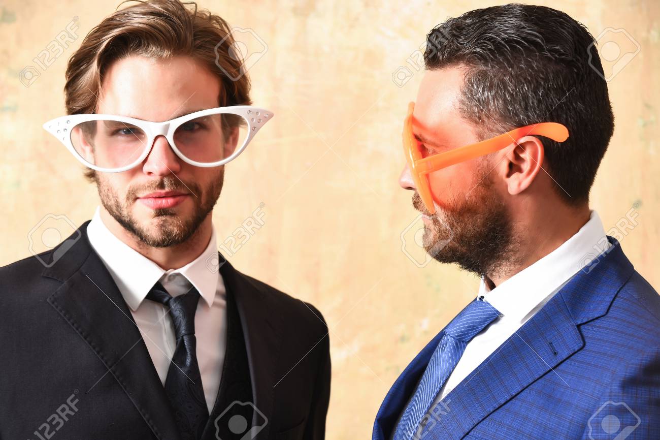 Bearded Men In Funny Summer Glasses In Business Suit