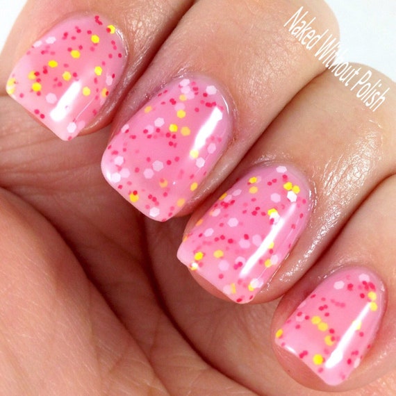 Pink Nail Polish Bright Light Pink Crelly Yellow White Glitter Little Miss Taffy From The Crystal Knockout Core Collection 15ml Full Size